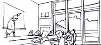 Competition entry for a sustainable primary school in Canterbury, including flexible use of building, outdoors teaching and integrated educational environmental displays.